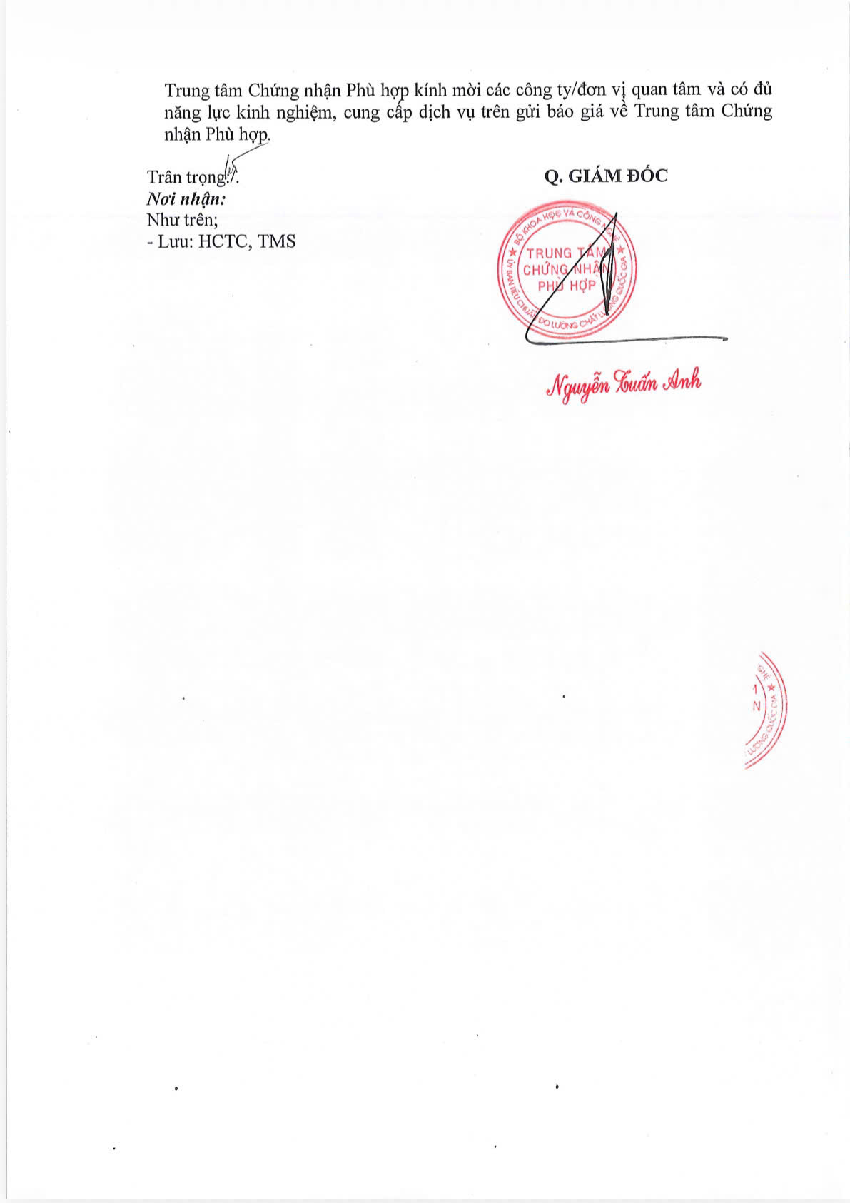Địa điểm nhận hồ sơ: Trung tâm Chứng nhận Phù hợp (QUACERT), số 8 đường Hoàng Quốc Việt, phường Nghĩa Đô, thành phố Hà Nội.